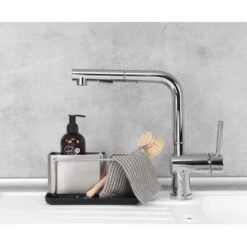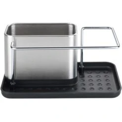 Design trifft Funktionalität mit dem praktischen WENKO Spülorganizer Orio aus Edelstahl. Der stilvolle Waschbecken-Caddy ist der ideale Platz zur dekorativen Aufbewahrung und Trocknung von Spülmittel, Schwamm, Spültuch und Spülbürste. Das Maß des anwendungsorientierten Spülorganizers beträgt (B x H x T): 13,5 cm x 10 cm x 7 cm, die Gesamtabmessung liegt bei (B x H x T): 21 cm x 10,5 cm x 12 cm. Durch die übersichtliche Aufteilung des Utensilienhalters erleichtern wir Ihnen das lästige Spülen.